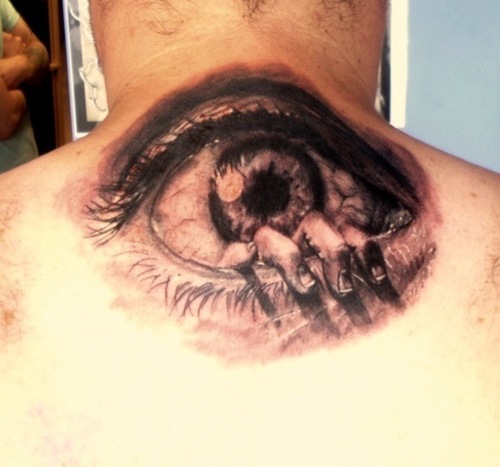 The image of the eye is a very popular theme in many designs. They are often used in the models, or to achieve unusual effects. For example, some people get tattoos on their hands eyes – especially the palm trees. You can also use the two eyes tattooed on his back, or even on the back of the head. While creating the picture to “see behind you.”